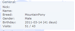 Birthday: This tells you when your pony was created/born. It will also tell you how old the pony is by years and days.