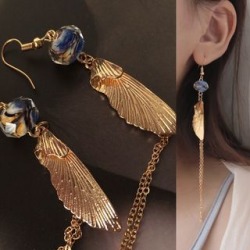 ethnic vintage handmade wood stone dangle earrings chinese traditional style copper beads earrings for women mc10090a