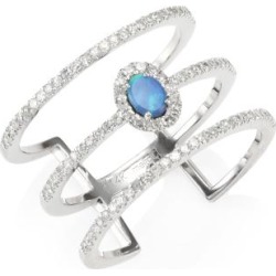 Pave Diamond, Opal & 14K White Gold Organic Ring