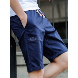 Blue Shorts Lace Up Cotton Chic Pants for Men