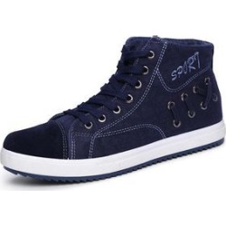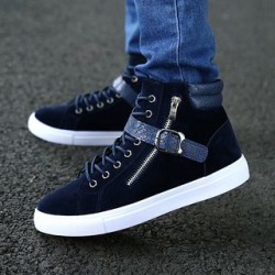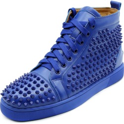 blue skate shoes leather men's round toe lace up rivets high top sneakers
