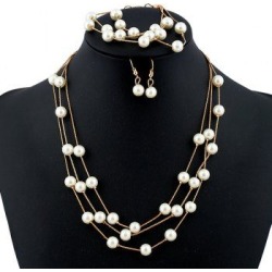 imitation pearl glass jewelry sets necklaces earrings and bracelet with alloy lobster claws white necklace 423mm bracelet 52mm earrings 30mm