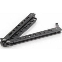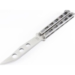 vogrye premium balisong butterfly knife trainer practice - enhanced version - black metal steel - no offensive blade - safe and perfect for beginner children butterfly knives lover and more white