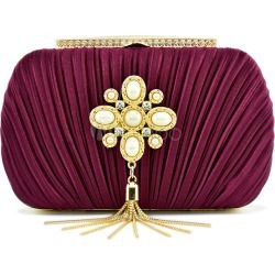 evening bags burgundy rhinestones gems fringe ruched wedding bags