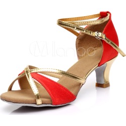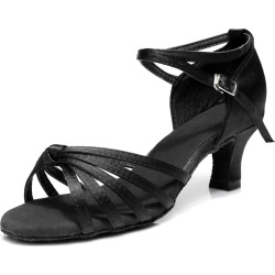 Ballroom Dance Shoes Black Peep Toe Printed T Type Ankle Strap Dance Shoes For Women