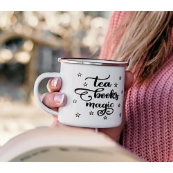 enamel mug for books and tea or coffee lovers