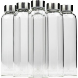 amethya 18-ounces glass bottles reusable beverage bottles stainless steel caps colored carrying loops set of 6 bottles