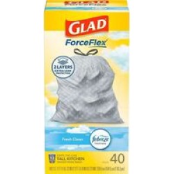 glad odorshield tall kitchen drawstring trash bags - febreze fresh clean - 13 gallon - 40 count