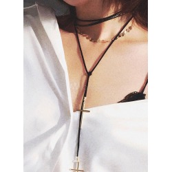cross necklace choker women's black long wrap choker with gold crucifix pendant