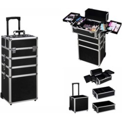 Ollieroo 4 in 1 Aluminum Rolling Cosmetic Makeup Train Cases