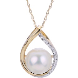 Pearl 14K Diamond & 8-9mm Freshwater Pearl Necklace