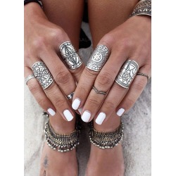 Bohemian 10Pcs/Pack Vintage Blue Stone Rings Lucky Stackable Midi Rings Set Knuckle Ring Rings For Women Jewelry Party White