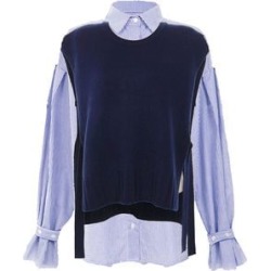 striped shirt v-neck knit vest