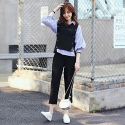 set vest striped shirt cropped pants