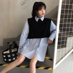 Set: Long Shirt + Striped Vest