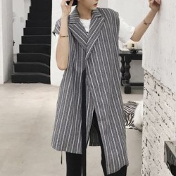 Striped Notch Lapel Long Vest