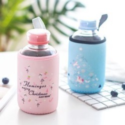 print glass water bottle with sleeve