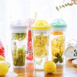 fruit print water bottle with drinking straw