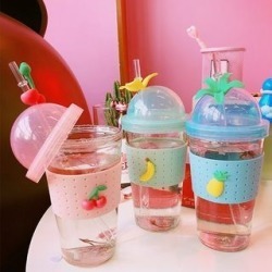 fruit glass water bottle with straw