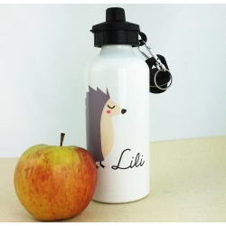 personalised water bottle with hedgehog