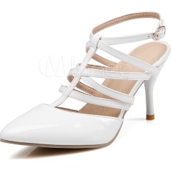 White High Heels Pointed Toe Ankle Strap Heels Women Shoes