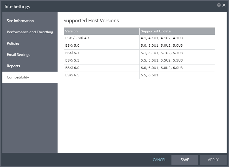 Zerto Virtual Replication works with most VMware hypervisor hosts. For a list of supported hosts, click