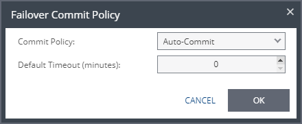 13.	Review the Commit Policy summary, and either click Change Settings, or click START FAILOVER to start the failover.