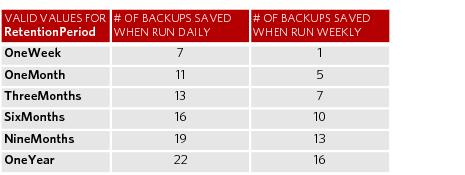 RetentionPeriod | The length of time to keep offsite backups, up to a maximum of 12 months. Over time, Zerto reduces the number of stored offsite backups to save space. ![]() The SchedulerPeriod parameter defines whether backups are created daily or weekly. For an explanation of how Zerto reduces the number of offsite backups, see the Zerto Virtual Replication Administration Guide. |