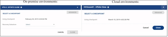 SELECT A CHECKPOINT: Opens the Checkpoints Dialog to select the checkpoint to use to make the clone. |