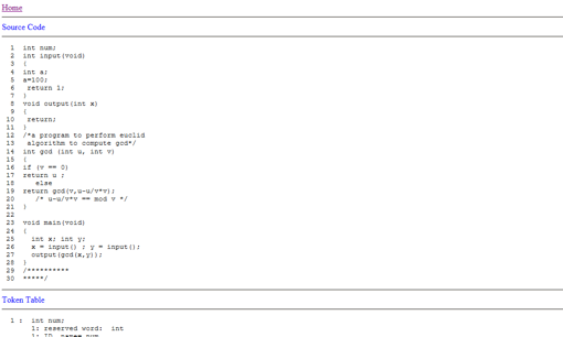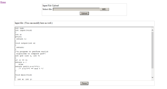 Developed the Scanner and Parser of an online compiler with PHP, using top-down algorithm to submit C-Minus codes and displaying the token, the syntax tree and the basic syntax errors on compile.zhaixiaoyu.com